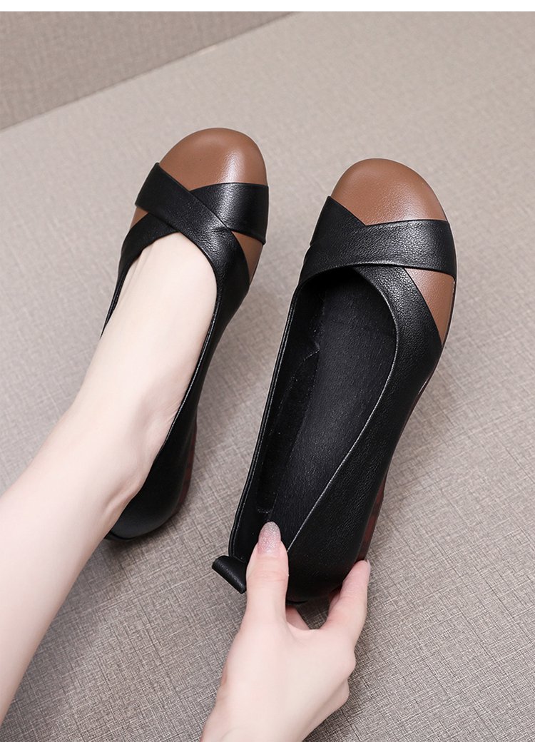 รองเท้าหนังส้นเตี้ยพื้นนิ่มแต่งสายรัด สำหรับคุณแม่